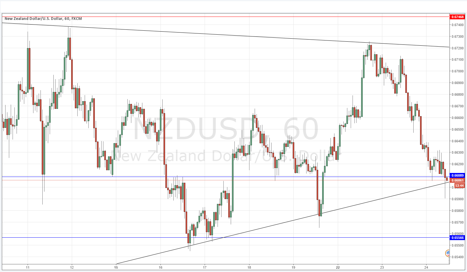 The question now for this pair is really whether the supportive trend line and the support below that at 0.6557 will hold. If we get a strong rejection of the supportive trend line just after New York opens, that will be a good sign that the price is going to go up, but at the time of writing that looks far from certain with the USD quite strong across the board.