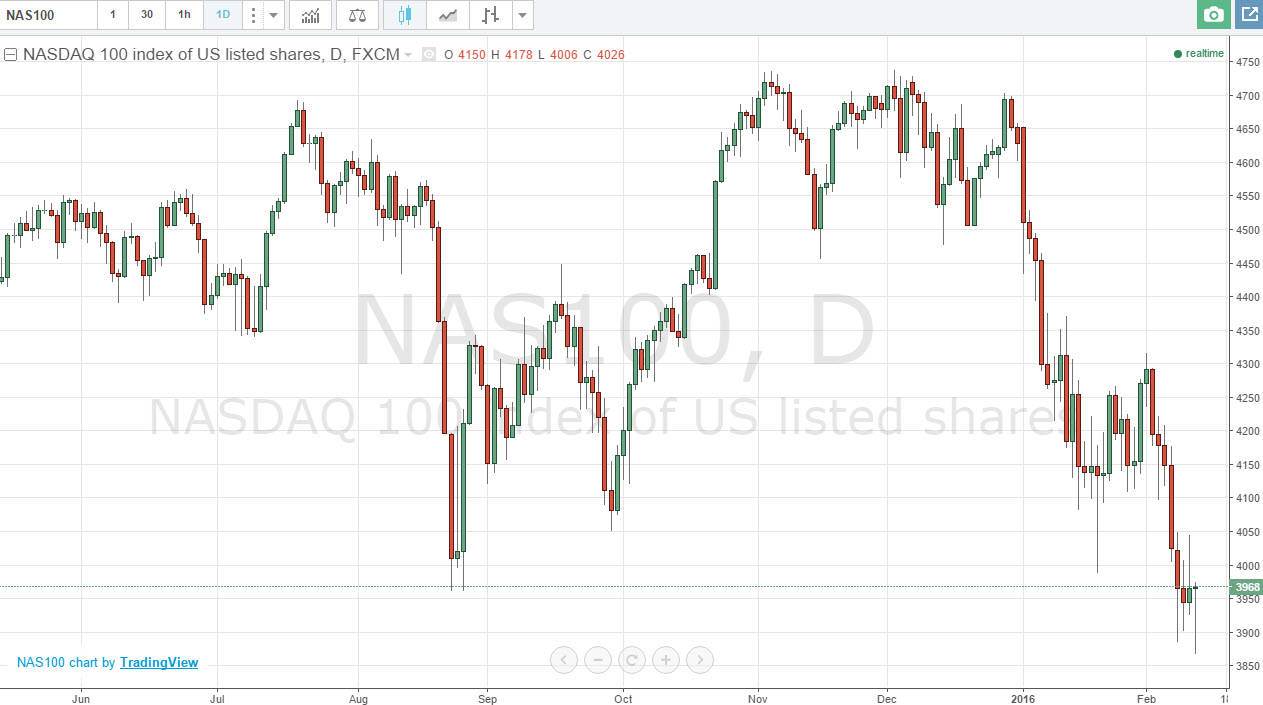 The S&P 500 fell during the day on Thursday, testing the 1800 region. Ultimately, this is a market that looks as if there is a bit of support at 1800, but it’s probably going to eventually break down below there. Although the candle does look a bit like a hammer, the reality is that we continue to see selling pressure again and again. That of course is a very negative sign. If we rally from here, I’m going to simply wait until we get a resistive candle above that we can start to sell. Once we do, I will be much more comfortable shorting this market rather than buying it.