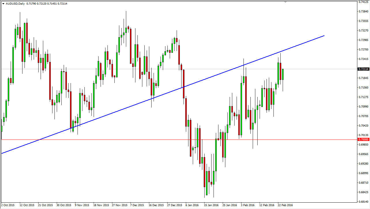 The AUD/USD pair initially fell during the course of the session on Wednesday, but turned back around to form a rather supportive looking candle. The shape of the candle can be best described as a hammer, and as a result it looks like we could try to go higher from here. If we do, it’s very likely that there will be a bit of resistance at the previous uptrend line, which has been fairly reliable so far. It’s probably at best a short-term move to the upside that we will see in this market.