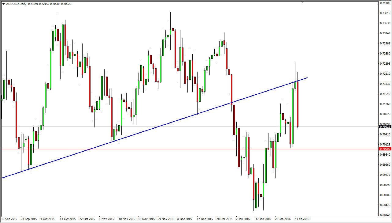 The AUD/USD pair had a very negative day during the session on Friday, as the markets found the previous uptrend line to be far too resistive to continue going higher. With that being the case, it looks like we are bound to test the 0.70 level for support, and then possibly break down below there. With that being the case, I feel that short-term rallies will continue to be selling opportunities as well, and therefore this market should continue to find sellers again and again. I have no interest in buying the Australian dollar as there are far too many negatives pieces to the puzzle out there, with the Asian economies showing significant signs of weakness.