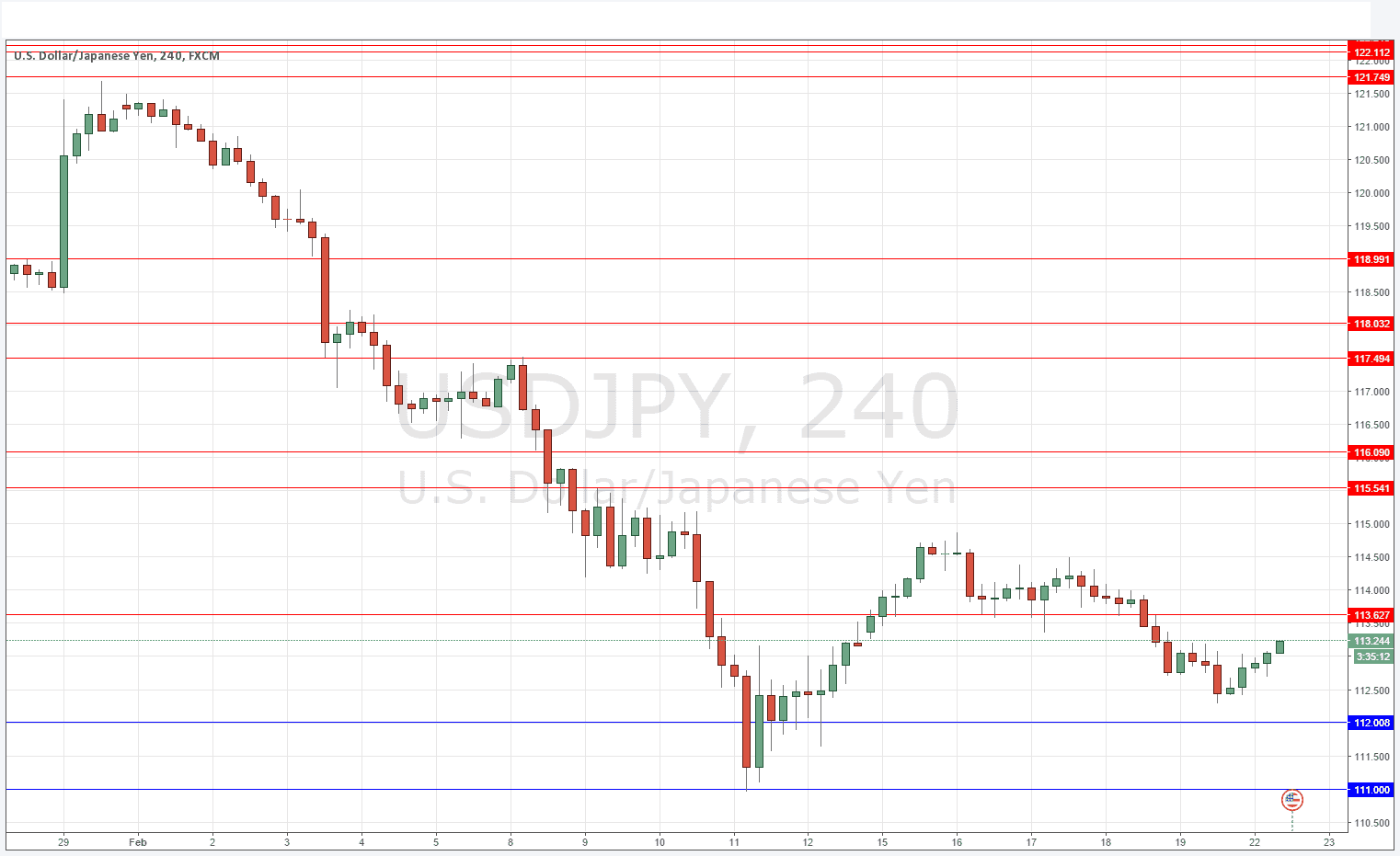 Last Thursday’s signals were not triggered as there was no bullish price action when 113.00 was reached.