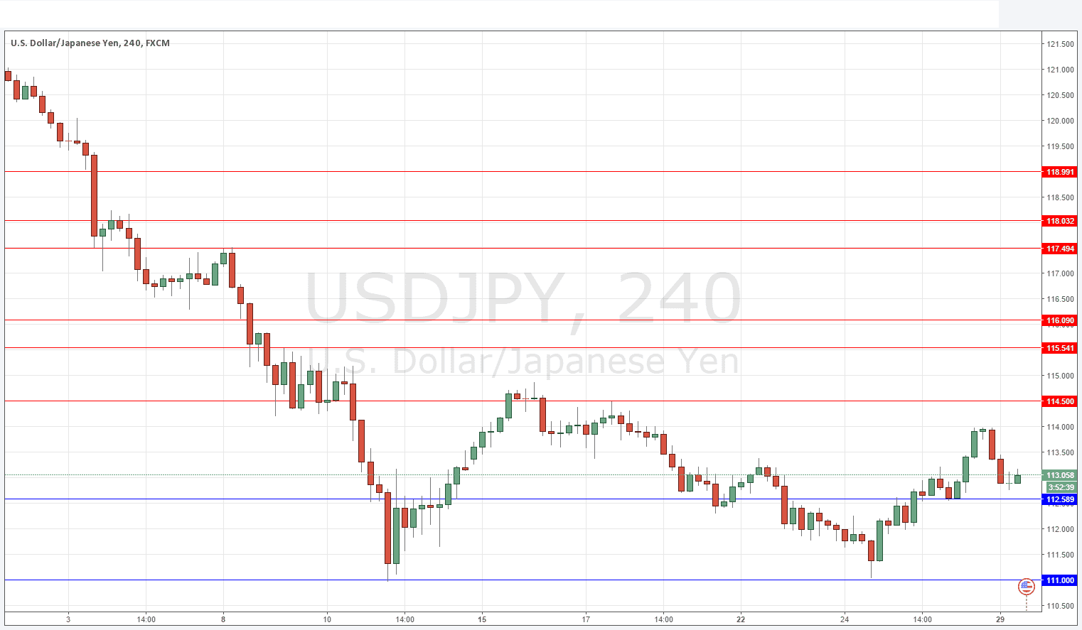 Last Thursday’s signals were not triggered as there was no bearish price action at 112.69.