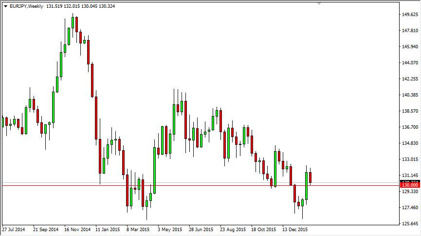 The EUR/JPY pair fell during the course of the week, testing the 130 level. Because of that it appears that the market will more than likely make a decision as to which direction to go based upon the 130 handle. If we are below it, I think we drop. If we are above it, all you can do is buy at that point in time.