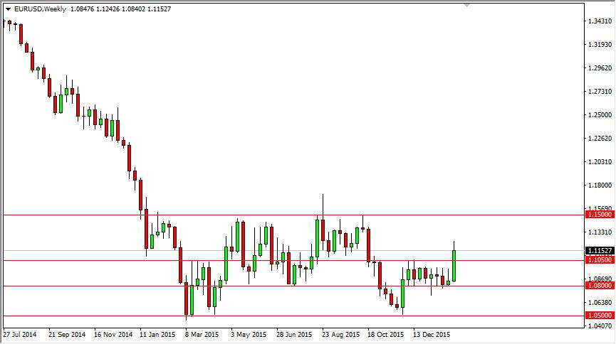 The EUR/USD pair broke out above the resistance at the 1.1050 level, suggesting that we are going to go higher. I believe that short-term pullbacks will continue to be the way to go long of the Euro at this point in time. I expect a positive week. At this point in time, I believe that the 1.15 level will be challenged, but it may not be right away.