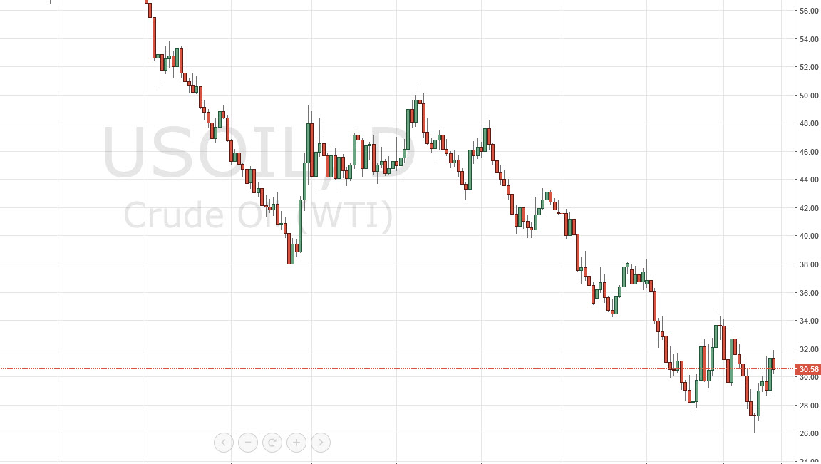 The WTI Crude Oil market initially tried to rally during the day but found the $32 level a bit too expensive. Because of this, I feel that the market is getting ready to fall again and we should continue the downward momentum. I believe that we will reach the $28 level first, and then eventually the $26 level. Ultimately, I do think we go below there because quite frankly there is still more than enough supply out there regardless of what Saudi Arabia or Russia does. Yes, they are suggesting to the world that they are going to cut back production, but quite frankly it’s going to take quite some time to work through the overhang of supply right now in the world.