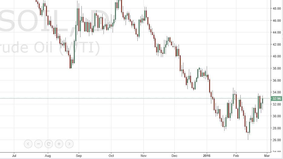 The WTI Crude Oil market initially fell during the day on Thursday, but found enough support near the $31 level to turn things back around. At this point in time, it looks like we are trying to reach the $34 handle now. This is an area that has been massively resistive recently, and as a result I think that sooner or later the market will turn around. On top of that, I see quite a bit of resistance at the $34 level, the $36 level, and of course the $38 level. On any sign of exhaustion, I am more than willing to sell this market off as it is a longer-term downtrend and of course there is a massive amount of supply that cannot be taken out by the demand at this point in time.