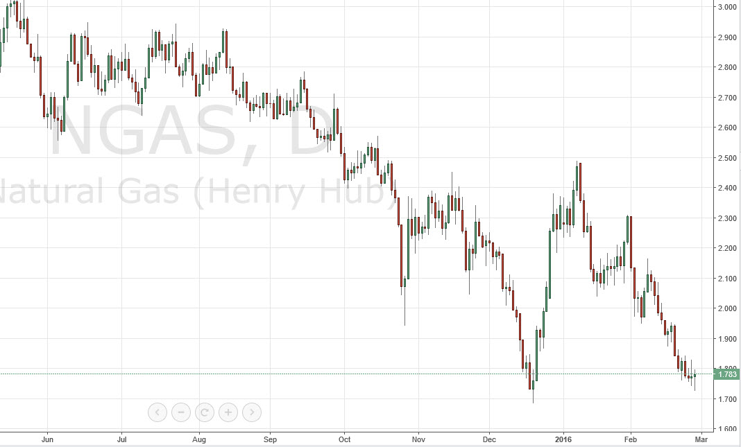 Natural gas markets went back and forth during the day on Friday, but turned back around form a bit of a hammer. This suggests to me that perhaps we will get a little bit of a bounce but this bounce will be sold. I'm just waiting to see exhaustion above to take advantage of what is a very obvious and long-term downtrend, or a break down to a fresh, new low at the $1.70 handle. There is no scenario that I’m willing to buy this commodity because even though the WTI market is bearish and oversupplied, it pales in comparison to this market. It is going to be a long time before we can consider buying natural gas for any significant amount of distance.