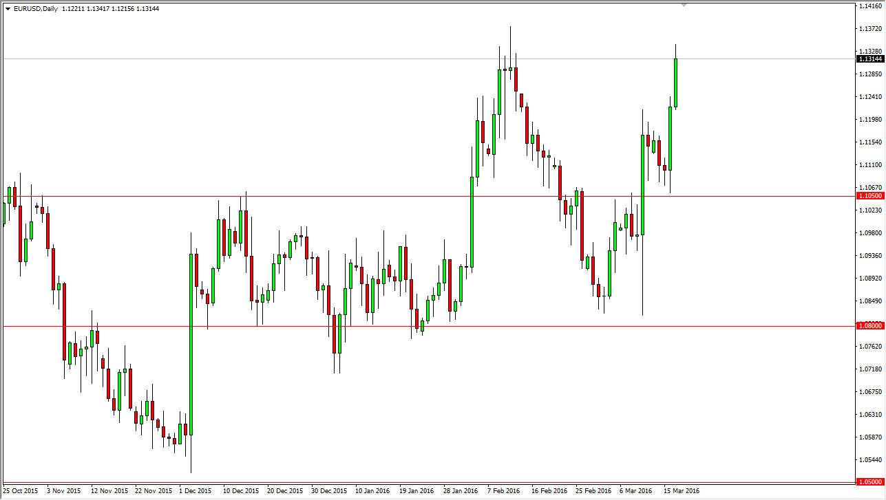 The EUR/USD pair broke higher during the course of the session on Thursday, as we continue to see quite a bit of bullishness in this pair. We initially pulled back to the 1.1050 level below, and as a result we found buyers step into this market. This is especially true considering that the Federal Reserve has suggested that it is not going to do as many interest-rate hikes this year as it originally anticipated, and as a result it looks as if the US dollar is going to continue to soften in general. That being the case, it makes sense that people will buy the Euro, because it is essentially the “anti-dollar.” With that being said, we should then reach towards the 1.15 level given enough time and we look at pullbacks as potential value that we can take advantage of.