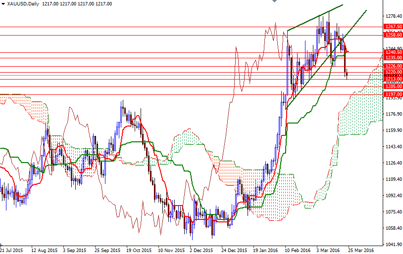With these in mind, I will keep an eye on the 1213 and 1226 levels. If the market dives below the 1213 level, then I think the market will have a tendency to fall further towards the daily cloud (1199/7). Closing below 1197 would indicate that XAU/USD is getting ready to visit the support at 1191/89. Note that the clouds on the weekly and daily charts overlap (the area between 1191 and 1168). This area should provide powerful support if prices return there. On the other hand, it is possible to see the XAU/USD pair challenging the 1230 and 1235 levels if the bulls can defend their ground and move beyond the 1226 resistance zone. I think clearing the resistance in the 1243-1240.50 zone is essential if the bulls want to win the battle and improve the short-term technical picture. In that case, the market will be aiming for 1248.