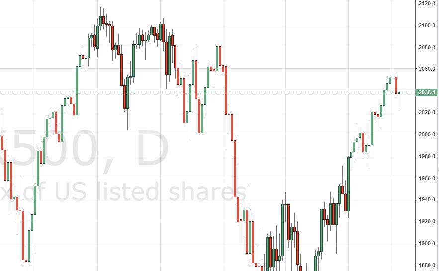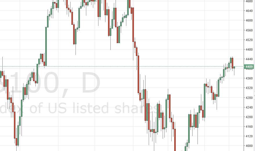 The S&P 500 initially fell during the day on Thursday, but found more than enough support near the 2020 level to turn things around and form a bit of a hammer. That being the case, the market then looks as if we are ready to go much higher, perhaps reaching for the 2060 level. I believe that on a break of the top of the hammer, more by orders will come into the market and push the S&P 500 in that direction. Even if we fell from here, I still believe that there is a massive amount of support near the 2000 handle, so we the way I have no interest in selling although I would admit that could throw me for a bit of a loop. Given enough time though, I feel that we reach the 2100 level.