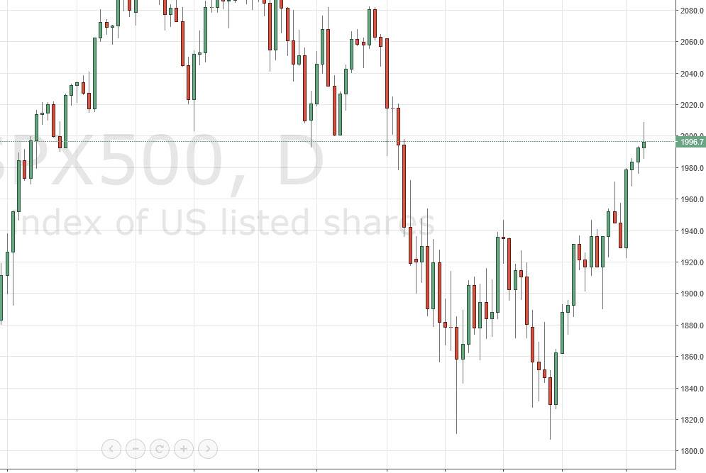 The S&P 500 initially tried to rally during the day on Friday, but turned back around as the area above the 2000 level was a bit too resistive. That’s not overly surprising to me though, because not only is it a large, round, psychologically significant number, but there also is quite a bit of noise just above here. By doing this, we ended up turning back around to form a shooting star, and the shooting star, of course, is a very negative sign. I would not be surprised at all if this market fell from here, but there is more than enough bullish pressure underneath to turn this market around again, and then shoot even higher. The 1950 level below should continue to be the “floor” in this market, but I feel that short-term sellers will probably step into this market if we can break down below the lows of the session on Friday. On the other hand though, if we break above the top of the shooting star from Friday, that is a very bullish sign.