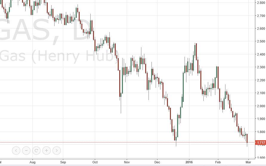 The longer-term downtrend of course is very much in effect, and as a result it’s very difficult to even think about buying at this point. The longer-term downtrend is based upon an oversupply of natural gas, which of course has not changed. The fact that we are getting fairly close to spring in North America is not going to help this market either. I am a seller again and again.