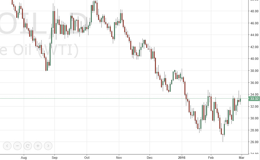 The WTI market rose during the course of the day on Monday after initially trying to fall below the $32 level. Ultimately though, we found enough resistance of the $34 level to turn things back around and it looks as if the sellers are going to continue pressing. After all, the Friday session was very negative forming a shooting star, and that of course normally means that the sellers are going to take control again. We are at the top of the overall consolidation area, so having said that it makes sense that we would fall from here as well.
