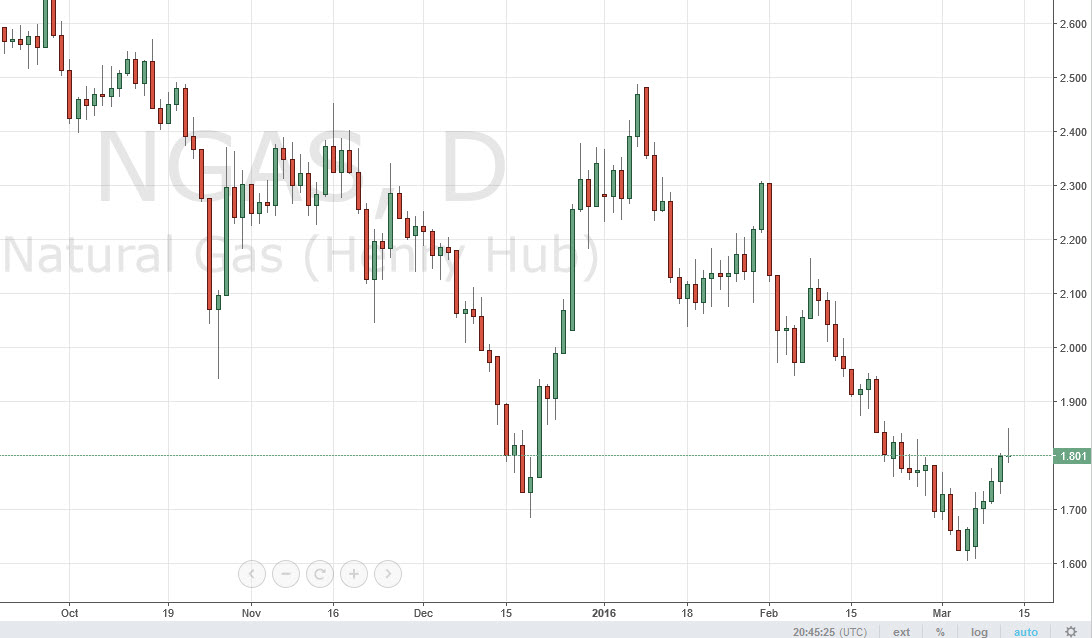 Even if we break higher, the market will more than likely struggle to get above the $2 level anyways, so that would only invite more selling in my estimation. Supply is still far too strong for demand to take care of at this point in time, and should continue to keep prices low.
