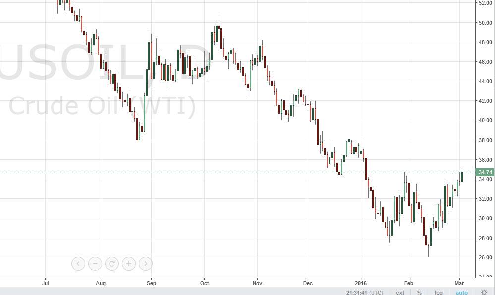 The WTI Crude Oil market rose during the course of the day on Wednesday, testing the $35 level. However, there is a lot of noise just above so it’s very likely that this market will eventually find resistance strong enough to turn it back around. In the meantime, it looks like short-term traders will continue to push this particular market higher. For myself, I am simply waiting for a longer-term opportunity to short off this market that is very much in a downtrend. I do not believe in the uptrend until we break well above the $40 level.