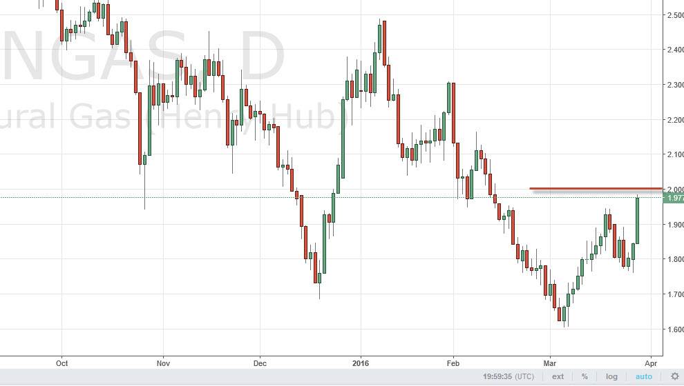The natural gas markets rose drastically during the course of the day on Tuesday, gaining 7%. That is a massive move, but we are still below the $2 level and I feel that the $2 level could be a bit of a barrier to overcome. If we get some type of exhaustive candle in this general vicinity, it could be an opportunity to start selling again. With this, the market could very well fall back to the $1.80 level if we get that resistive or negative move. I believe that we could break down below there as well, and as a result I am still very negative. However, the area above the $2 level is going to be very difficult for me to start feeling comfortable going long, as we had such a massive downtrend at this point in time.