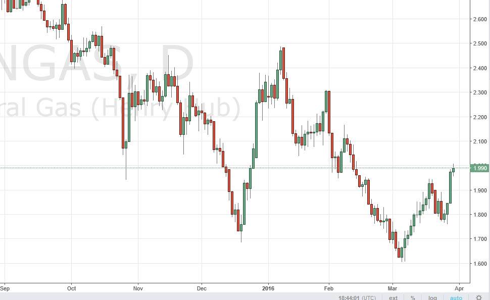 The natural gas markets went back and forth during the course of the session on Wednesday, as the $2 level offered enough resistance to keep the market down. With this, the market could very well turn back around and break down below the bottom of the range during the day. Ultimately, the market will more than likely reach towards the $1.80 level, and then possibly the $1.60 level. With this, rallies should continue to be selling opportunities, and I believe that the area above the $2 level is going to continue to be very difficult to break above.