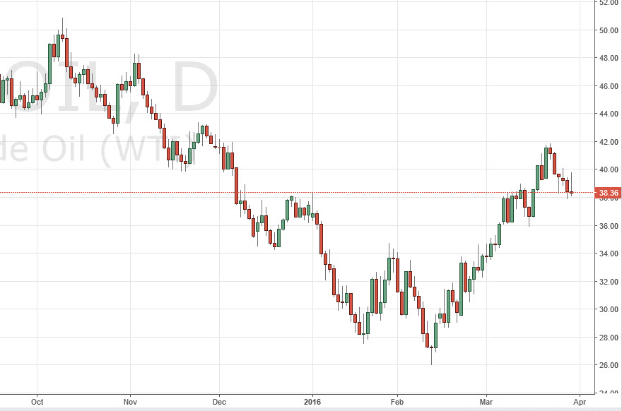 The WTI Crude Oil market initially tried to rally during the course of the day on Wednesday, but we found enough resistance near the $40 level to turn things back around and form a shooting star. The shooting star of course is a negative sign, so it’s very likely that we could fall from here. If we break down below the $38 level, the market should then reach the $36 level below there, and perhaps even the $34 level below that. I don’t have any interest whatsoever in buying this market right now, because I believe that there is going to be a significant amount of resistance at the $40 handle. Also, there is a massive amount of supply out there, and that is going to put quite a bit of pressure on this market.