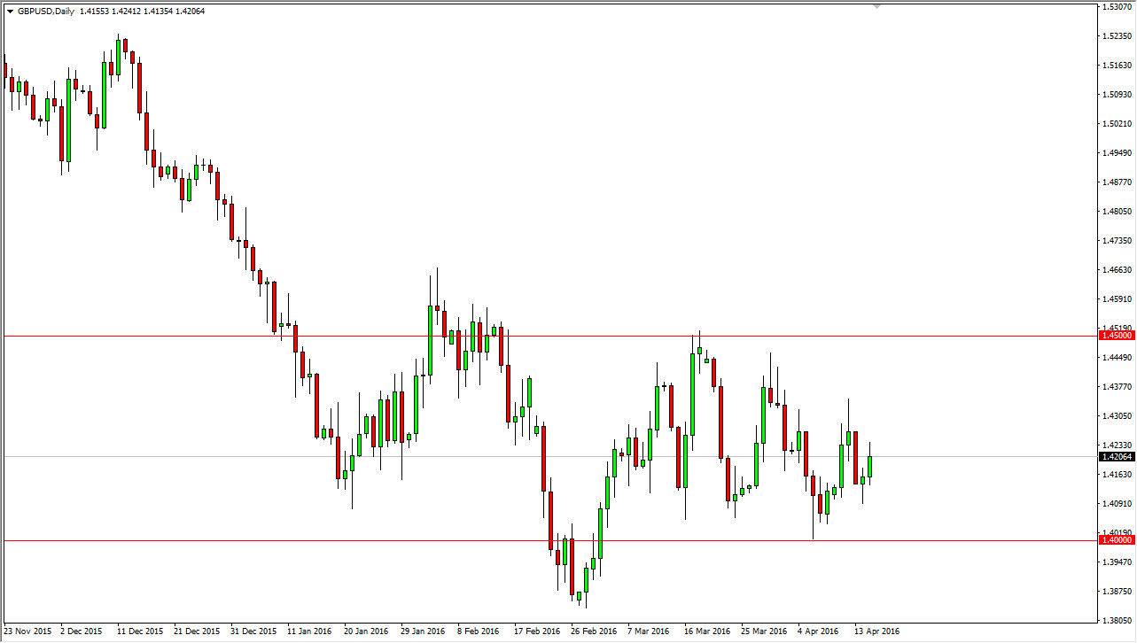 The GBP/USD pair rose during the day on Friday, as we broke towards the 1.4250 level. We broke above the top of the hammer from the Thursday session which of course is a very positive sign, but ultimately it appears that the market is simply just tightening up as we cannot make any real decision. With this, it’s probably only a matter of time before we see ourselves bouncing around and therefore I feel that the volatility is going to be far too strong to ask look at any real money to work in this market. At this point in time, believe that the British pound should just simply be avoided against the US dollar, as we have far too much in the way of confusion obviously. Remember, we have the Federal Reserve on one side of the Atlantic looking less and less hawkish, while the United Kingdom debates on whether or not it wants to leave the European Union. That of course is bad for the British pound, so this point in time this is a fight between 2 very weak currencies.
