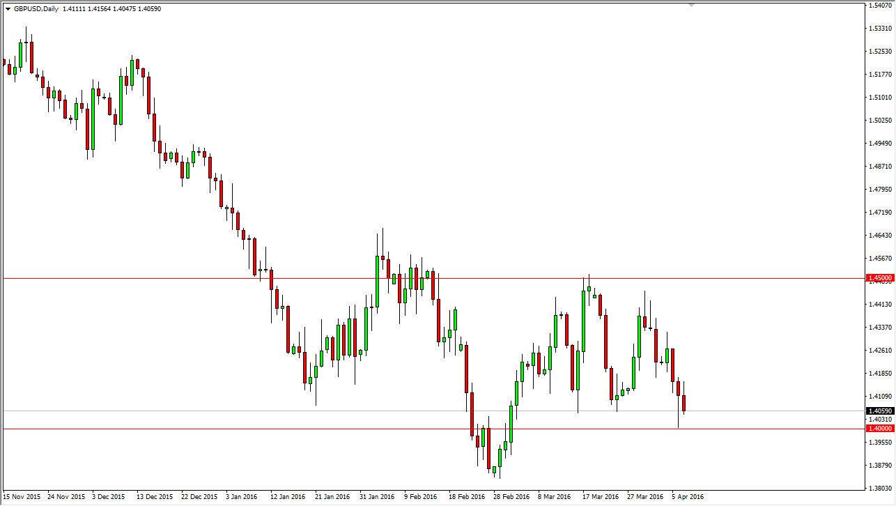 The GBP/USD pair initially tried to rally during the day on Thursday but turned back around and fell from there. The market continues to have bearishness in it but I recognize that the 1.40 level below is massively supportive, and as a result I think that the buyers will return sooner or later. However, if we break down below that level that would be very negative for the British pound. I also recognize that if we can break above the top of the candle from the Wednesday session that was of course was a hammer, that would be bullish enough to have me start buying as I think we would simply return to the previous consolidation area that has been struck between the 1.40 level on the bottom and the 1.45 level on the top.