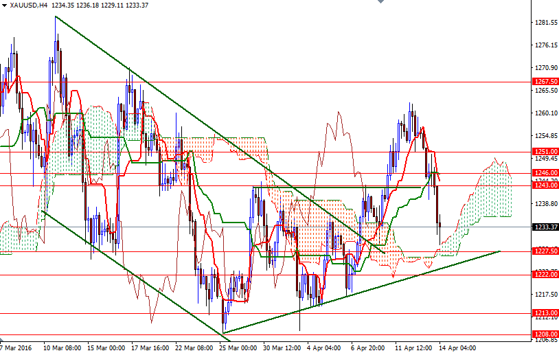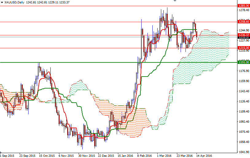 Not too far from the current levels, there is a critical support area between 1227.50 and 1222. So, we need to get down below there in order to continue to the downside. If the XAU/USD pair makes a sustained break below 1222, then look for further downside with 1215/3 and 1208 as targets. However, if the aforementioned support (1227.50-1222) area -where the top of the daily cloud and short-term bullish trend line converge- remains intact, expect a rebound towards 1236.37-1239.50. Beyond that, sellers will be waiting in the 1246/3 region. The bulls will have to push prices back above 1246 so that they can retest the 1251 level.