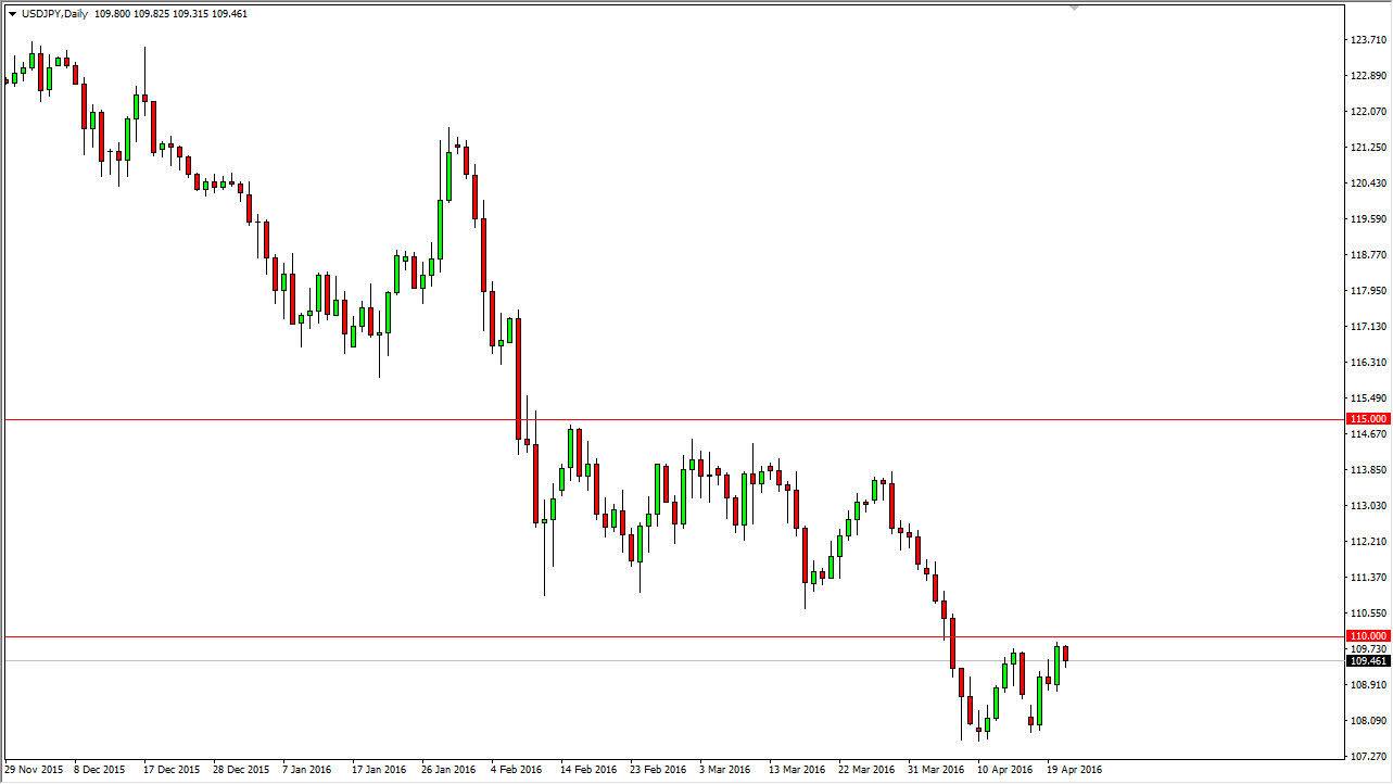 The USD/JPY pair fell during the day on Thursday, as we continue to see quite a bit of resistance at the 110 level in order to keep the market lower. This is an area that has quite a bit of resistance all the way to the 111 level, and with that being the case it’s only a matter of time before sellers get involved in my opinion. If we can break down below the bottom of the range for the Thursday session, and feel that this market will probably grind down towards the 108 level. On the other hand, if we can break above the 111 level, at that point in time I feel that the market will go much higher. At this point though, I don’t see any reason to think why we would breakout to the upside.