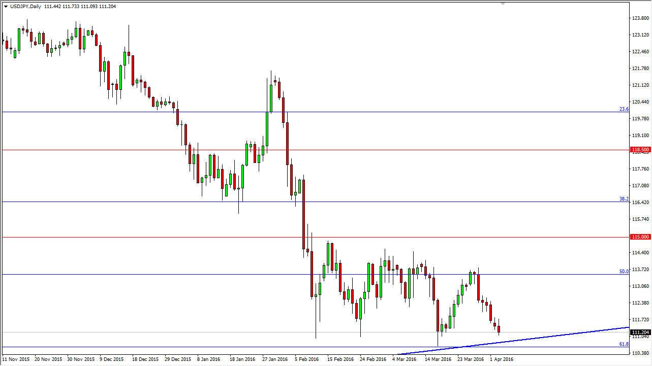 The USD/JPY pair initially tried to rally during the course of the session on Monday, but turned back around to form a bit of a shooting star. This is a market that has quite a bit of support just below though, not only due to the fact that the 111 level is a large, round, psychologically significant number, but also because we have a massive amount of support at the 110 level. Beyond there, we have the 61.8% Fibonacci retracement level, so there should be plenty of reasons for this market to turn back around. However, we do not have a supportive candle at the moment that I would trust to start buying. On the other hand, we could get a break above the top of the shooting star which of course would also be a very positive move as well.