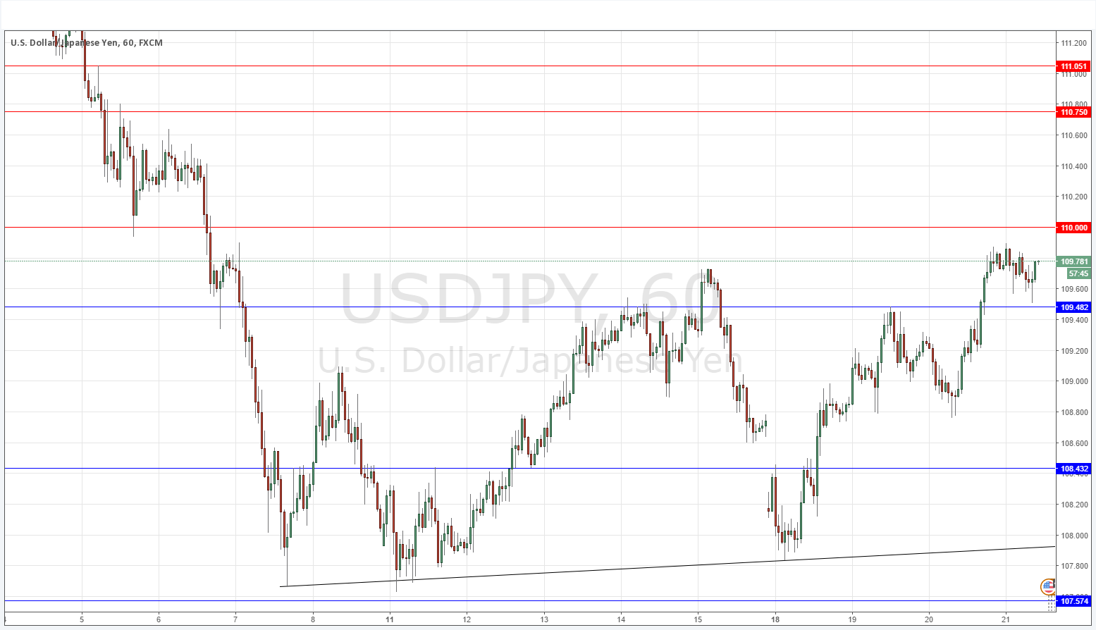 • Take off 50% of the position as profit when the trade is 20 pips in profit and leave the remainder of the position to run until at least 109.50.