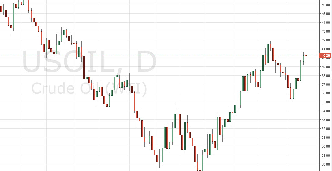 The WTI Crude Oil market continues to show strength during the session on Monday, as we broke above the $40 level. Ultimately, there is quite a bit of resistance above at the $42 handle, and although we show quite a bit of strength, I am a bit hesitant to get too excited about this move. Yes, I believe that we do continue higher today, but in the end a lot of this is based upon optimism of the upcoming April 17 meeting held by oil producing countries. If a proposed production freeze does in fact happen, the question then becomes whether or not the market will continue to go higher based upon any decision made in favor of doing so. I believe that the market is essentially “front running” that potential decision. I believe that an exhaustive candle in this area would be a selling opportunity, but for the next several days you would have to think that the optimism should continue. On the other hand, if they do not announce a production freeze, this market will turn right back around.