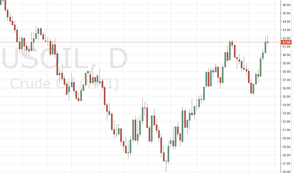 The WTI Crude Oil market initially tried to rally during the day on Wednesday, but found the $42 level be far too resistive to continue going higher. Ultimately, we ended up forming a shooting star which of course is one of my favorite negative candles to start shorting. If we get that move lower, I feel that we could very well find ourselves reaching down towards the $40 level, perhaps even as low as the $36 level. A lot of the rally has been based upon the idea that the April 17 meeting in Doha will produce some type of production freeze in order to bring down supply. At this point, I believe that we either have baked in all of the positivity of that possibility, or have set up for a massive disappointment if they don’t come together on an agreement. With this, I believe that we need to pull back, and we may even fall rather drastically.
