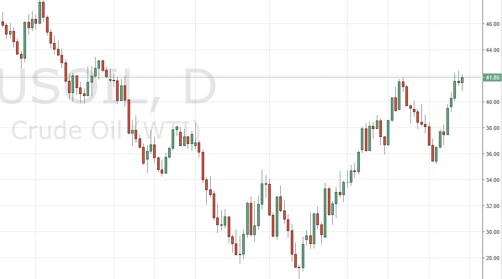The WTI Crude Oil market initially fell during the course of the session on Thursday, but turned right back around to form a bit of a hammer. We are pressing up against the $42 level yet again, and as a result we could very well find the market trying to grind its way higher. However, we have the meeting in Qatar over the course of the weekend, and that will most certainly have a massive effect on the markets as OPEC and non-OPEC countries discuss whether or not to do some type of production freeze.