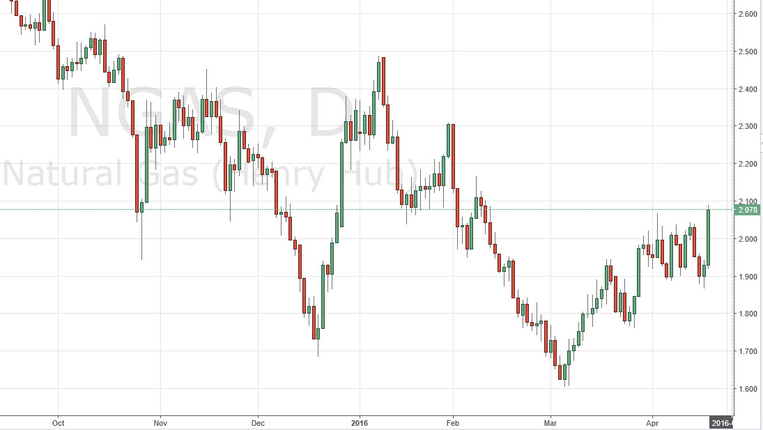 The natural gas markets exploded to the upside, gaining 8% by the time it was all said and done. With that being the case, looks as if we are going to continue to try to go higher, with quite a bit of resistance running all the way to the $2.30 level. That being said, this is a market that sooner or later will find it's sellers. This is more or less a reaction to the oil markets, but quite frankly the demand simply is not going to be there until at least the winter of this year. Ultimately, the easiest play is to wait for an exhaustive candle that we can start selling, but at this point in time it I’m going to have to sit on the sidelines and be very patient.