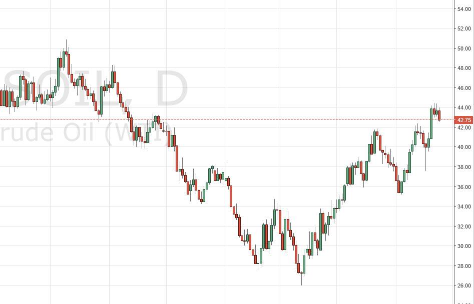 The WTI Crude Oil market initially trying to rally during the day on Monday, but found the $44 level to be far too resistive again. By doing so, we fell below the $43 level during the day, and as a result it looks as if we are more than likely going to try to reach towards the $42 handle going forward. That is an area that should be supportive, based upon the fact that it had been so resistive previously. There are several oil-producing companies giving earnings reports this week on Wall Street, so it is possible that perhaps it will have an effect on the marketplace as far as the profitability of the crude markets themselves. Ultimately, this is a market that seems to be very volatile, and I do think that sooner or later the buyers will get involved again.