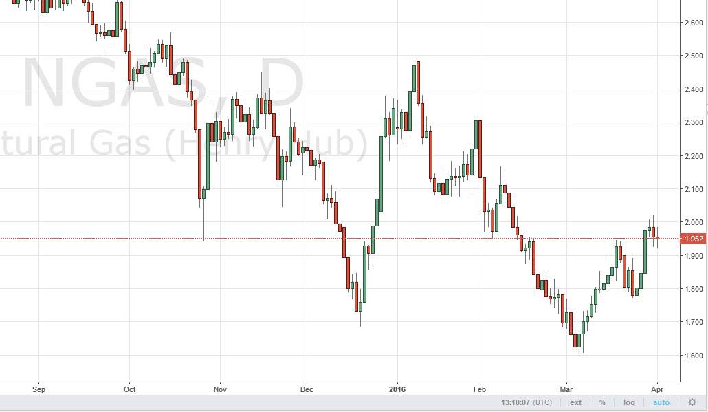 Natural gas went back and forth during the course of the day on Friday, forming a neutral candle as we continue to hover just below the $2 barrier. I believe that $2 will continue to be the ceiling in this market and that natural gas will struggle to get above that level anytime soon. Even if it does, there is a massive amount of resistance all the way to the $2.10 level, so at this point in time I’m simply looking for signs of exhaustion in order to sell or a break down below the bottom of the range for Friday would do as well. At that point, one would have to think that the market would reach towards the $1.80 level, which of course was the scene of the last bounce.