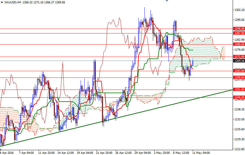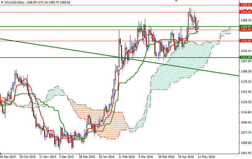 Gold edged slightly higher on Tuesday as a retreat in the U.S. dollar helped lure buyers back into the market after the previous session's 1.65% slide. The XAU/USD pair tried to break below the 1258.60 level but the bulls managed to defend their grounds, as a result prices headed back to the 1272/69 area as expected. Although a softer dollar encourages investors, a rise in equities -bolstered by a rebound in oil prices- limits the metal's upside potential.