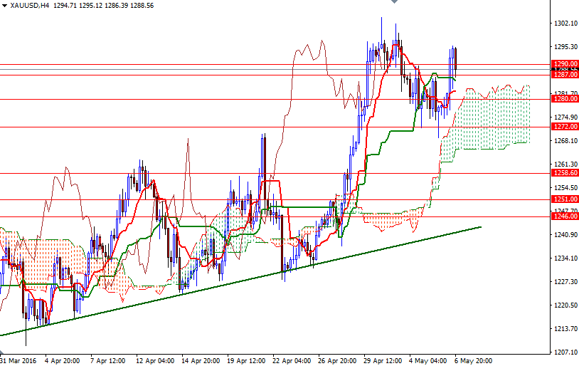 Gold ended the week down $2.64 at $1288.56 an ounce as hawkish comments from Fed officials weighed on the market. The XAU/USD pair initially tried to rise but failing to hold above the $1295 level prompted investors to book profits ahead of the Labor Department's non-farm payrolls report. Consequently, prices fell but then bounced up quite nicely from the anticipated support level at $1269 and returned to the $1295 level again after the U.S. employment data showed weaker-than-expected growth in April.