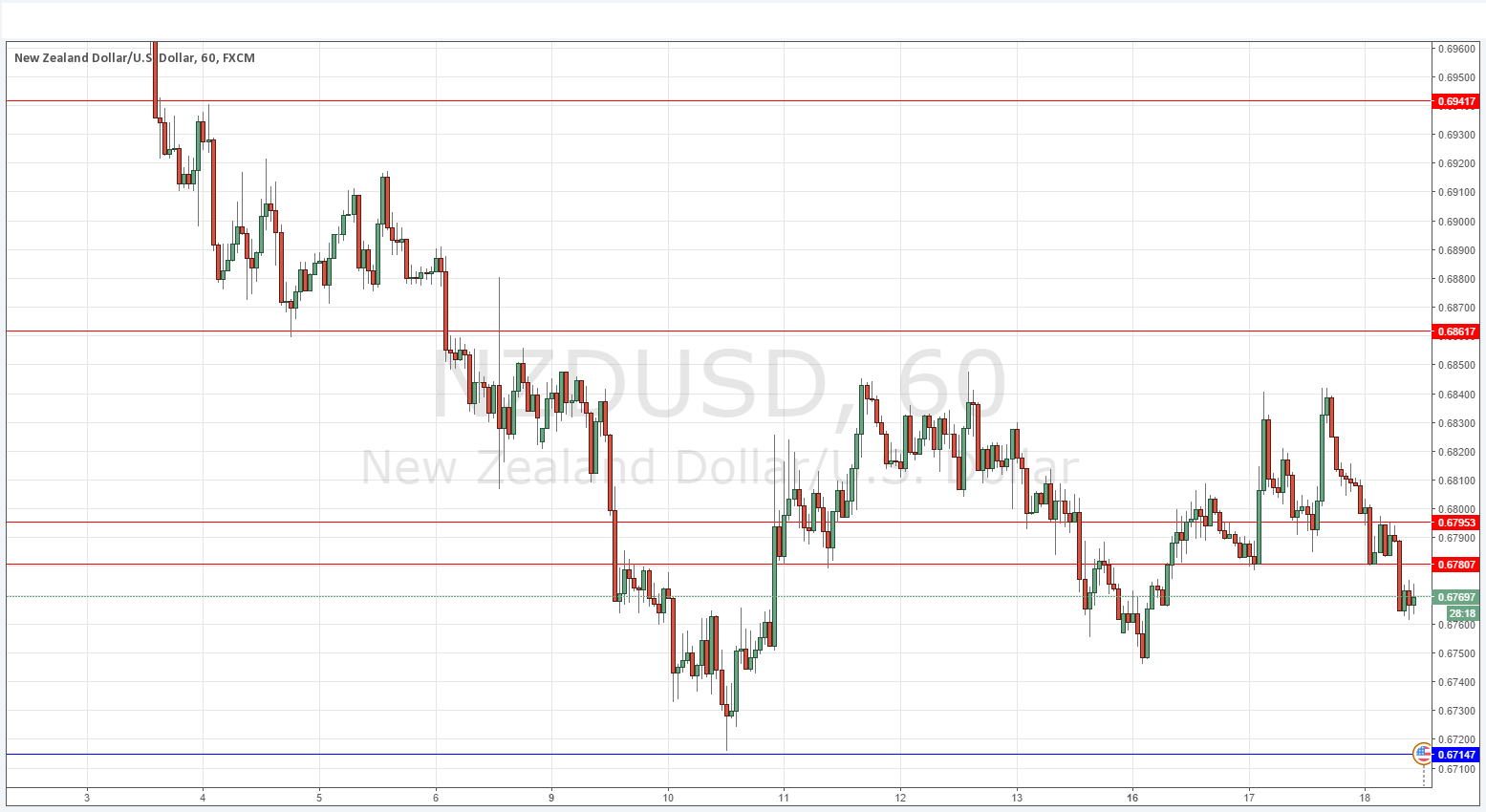 I wrote yesterday that there are better opportunities elsewhere and I think this is still true. Overall a bearish change from yesterday as the price moved downwards in line with USD strength across the board, flipping the support at 0.6781 to new resistance. I am also more comfortable to insert a new resistance level just under the 0.6800 handle.
