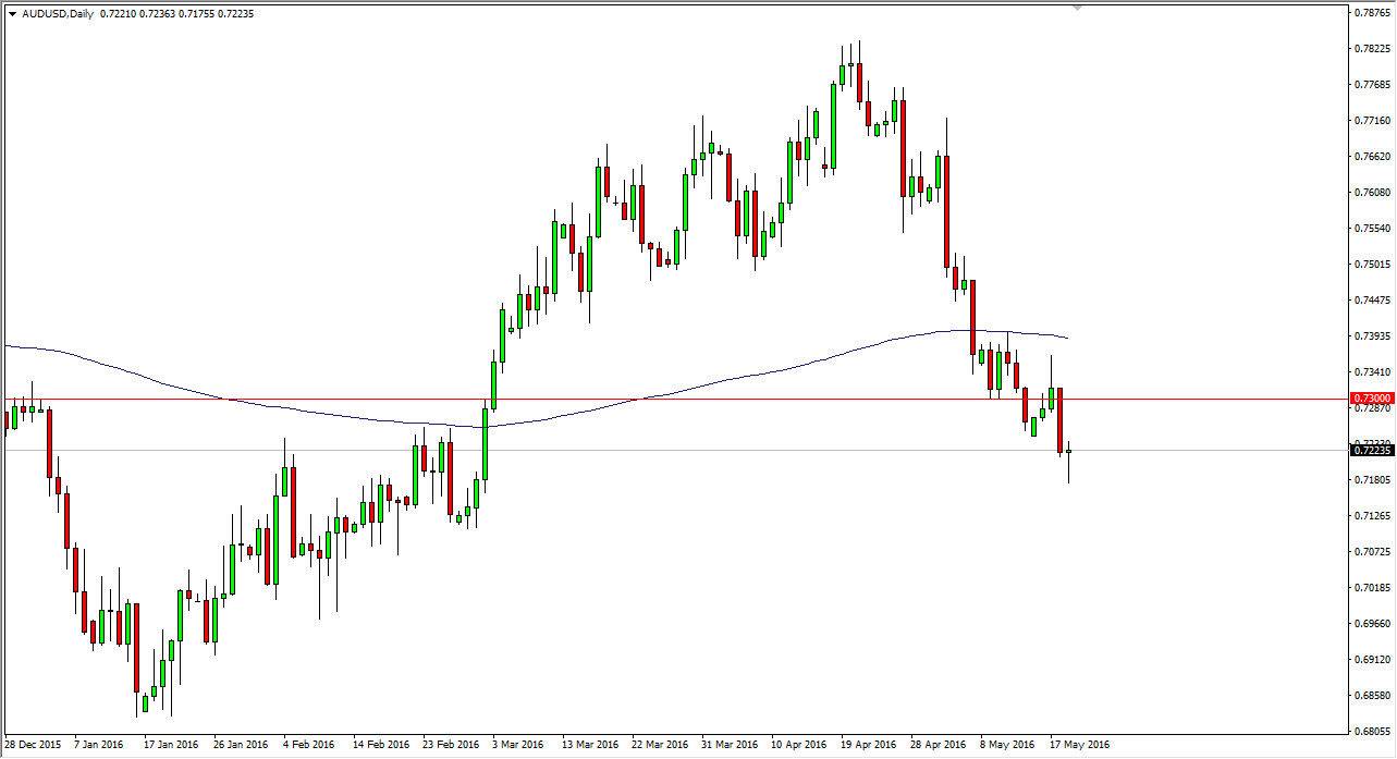 The Australian dollar fell a bit during the course of the session on Thursday, but bounced off of support below to turn things around and form a hammer. The hammer of course is a very bullish sign, and if we can break above the top of a hammer, we should reach towards the 0.73 level above. That’s an area that has been supportive in the past, and should be resistive now. Because of this, I have no interest in buying this market, and I believe that simply waiting for exhaustive candle after a small rally would be the way to go to start selling. On the other hand, we do have the 200 day exponential moving average even above there, so this point it seems almost impossible to buy the Aussie.
