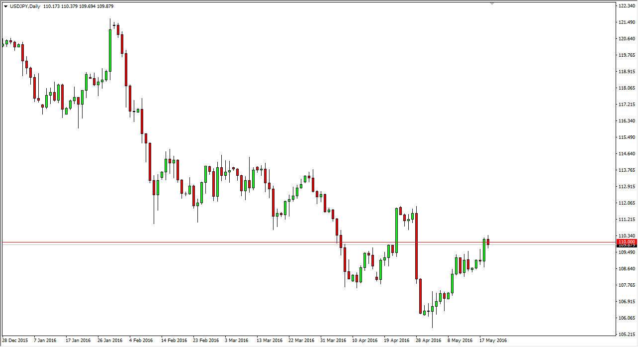 The USD/JPY pair fell slightly during the course of the day on Thursday, as the 110 level has offered a bit of resistance as one would expect. This was an area that was fairly supportive in the past, so it makes sense that resistance could be expected at this point. The impulsive candle on Wednesday was fairly impressive, and as a result I still believe that the buyers are going to get involved in this market, and push the dollar higher. If we break above the top of the range during the session on Thursday, I believe that we will reach towards the 112 level. I also believe that there is a significant amount of support below at the 109 handle.