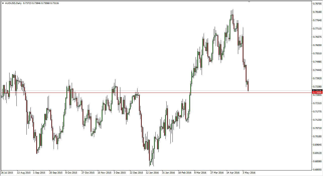The AUD/USD pair fell again during the day on Monday, as we continue to drive much lower. The 0.73 level being targeted isn’t much of a surprise, after all it was an area of significant resistance previously so the fact that we are down here doesn’t surprise me. However, I do recognize that we could get a bit of a bounce in this area and therefore may have to wait to see whether or not we get an exhaustive candle after that bounce. If that’s the case, the market would offer “value” in the US dollar. Another way to trade this market of course would be a break down below the 0.73 level, and go even lower soon.