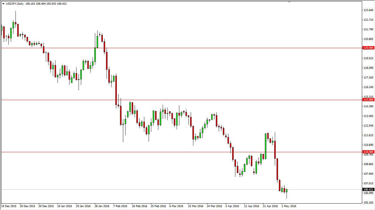 During the course of the day on Tuesday, the USD/JPY pair fell significantly, reaching towards the 105 level. We ended up forming a hammer, which of course suggests that we could have a bit of a bounce from here. That is a short-term buying opportunity as far as I can see, and I think that the market should then goes to the 108 level. The area above there has quite a bit of noise all the way to the 110 level. If we have a bit of an exhaustive candle in that general region, it will end up being a nice selling opportunity. On the other hand, if we break down below the 105 level, this would be very negative in this market, which should send the USD/JPY pair down to the 102 level, followed by the 100 level. If we break above the 110 level, then the entire complexion of this pair changes.