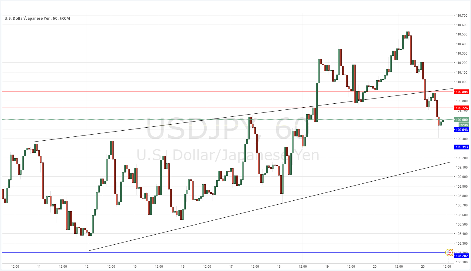 There seems to be support at 109.54 or thereabouts which is currently holding up the price.