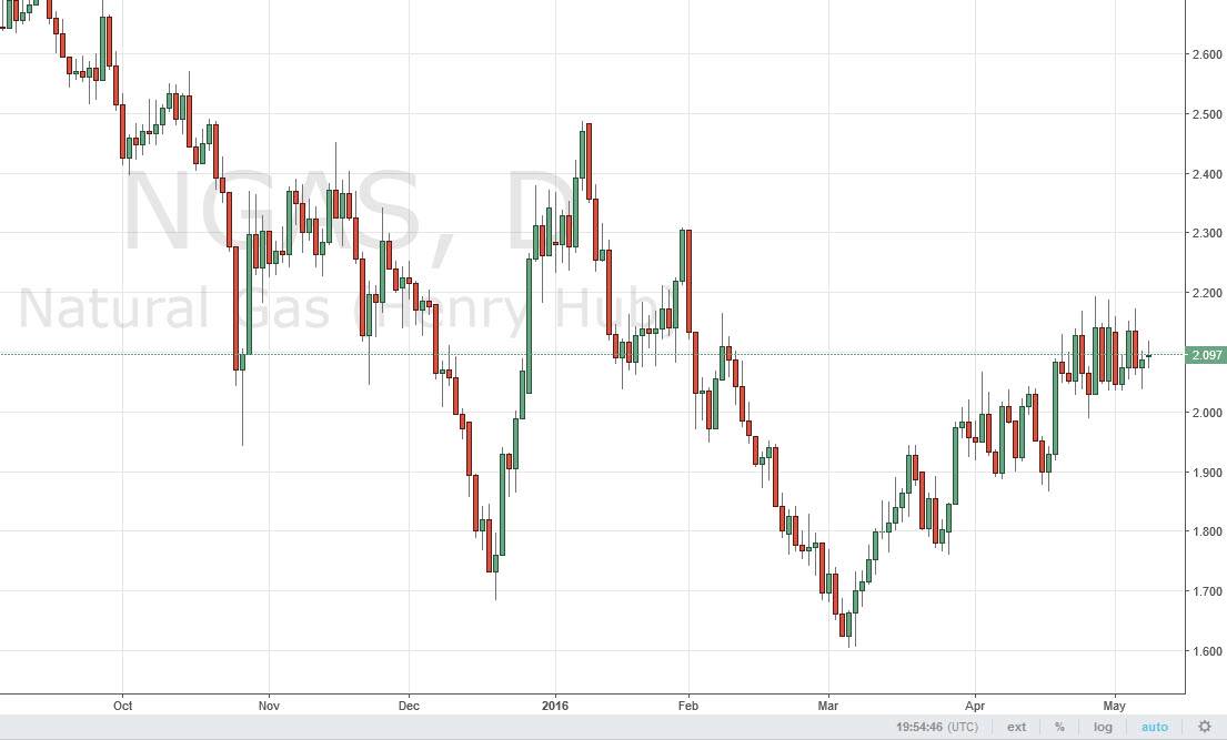 The market has been in a very bullish trend lately, but I still believe that we are in an overall negative trend for the longer term. With that, I am much more comfortable shorting this market, especially near the $2.20 handle. A break down below the $2.00 level would be a negative sign, and could send this market down to the $1.90 level without too much trouble. On the other hand, if we do break above the $2.20 level, that would be a very bullish sign and probably send this market looking for the $2.30 level.