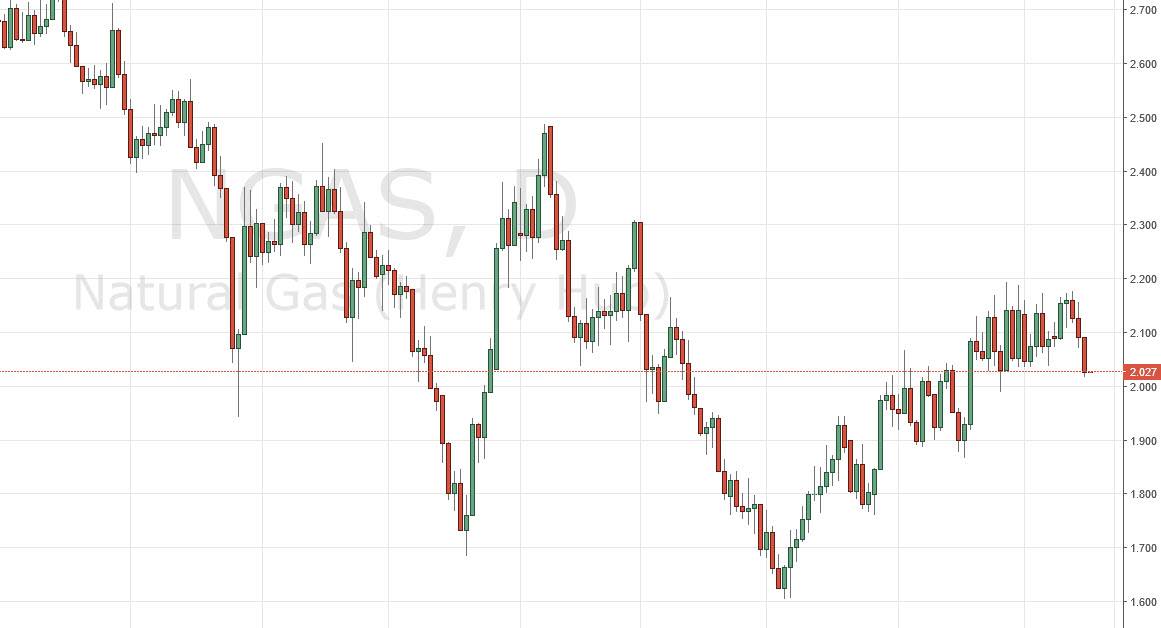 If we do bounce from here, I would not expect this market to go above the $2.20 level which has been so resistive recently. I’m looking for a simple exhaustive candle in that general vicinity in order to start shorting again after the rally and will not buy into it.