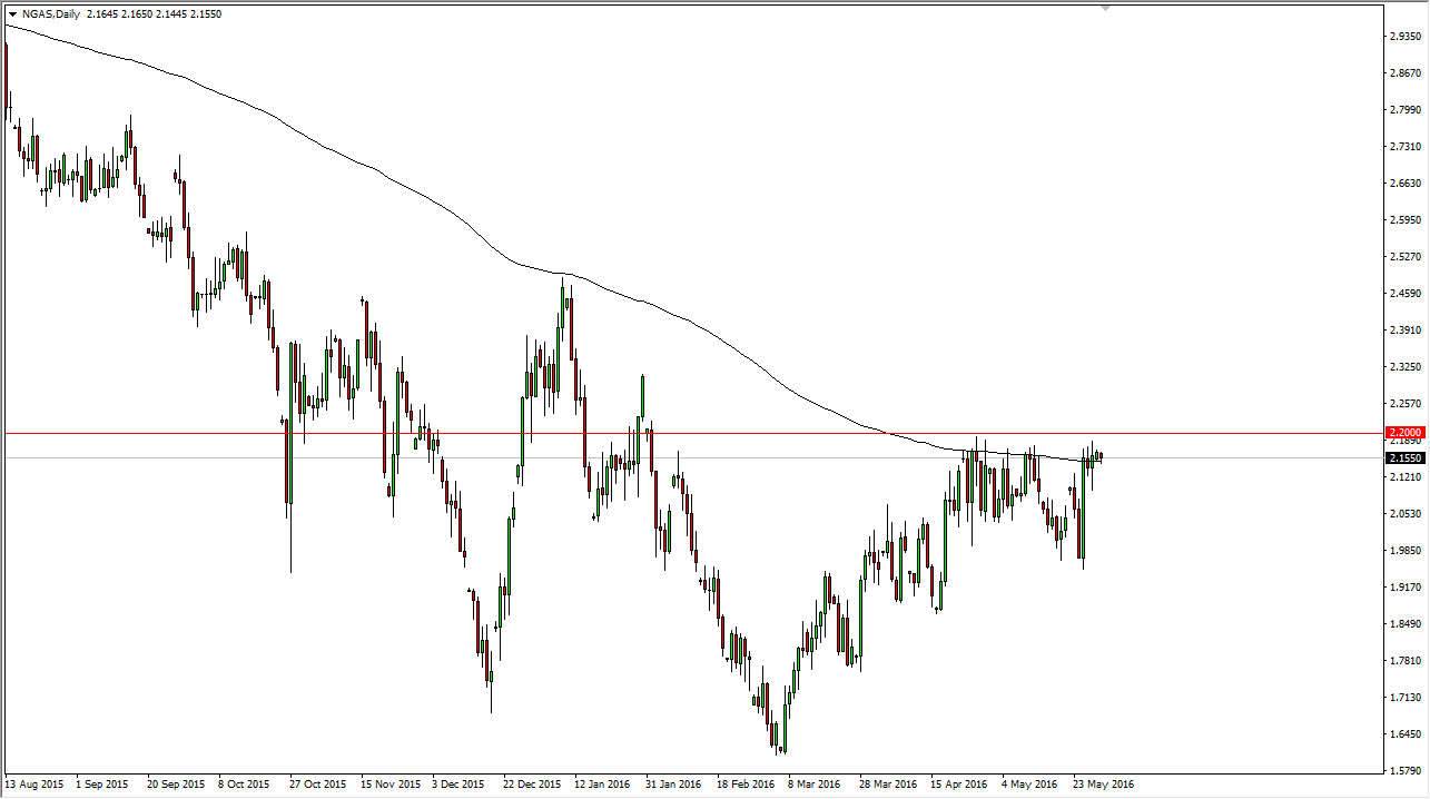 Natural gas markets did very little during the session as well, simply because the Americans are by far the biggest traders of this commodity. We are sitting just below the $2.20 level, which is akin to the $50 level in the WTI Crude Oil market, and with that being the case it looks as if a break above there would very much move the market in an uptrend as we are currently bouncing around the 200 day exponential moving average. This of course is often used by longer-term traders, so with this being the case I am very interested in this market at the moment but I do not want to start buying into we break above the $2.20 level on a daily close. Until then, I would be very cautious here.
