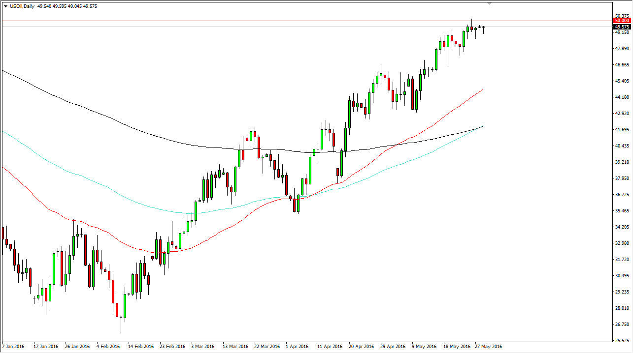 The WTI Crude Oil market was very quiet during the session on Monday as Americans celebrated Memorial Day. Having said that, the one thing that I do see on this chart is that we stubbornly sit still just below the $50 level. It is because of this that I think it’s only a matter time before we build up enough momentum to get above there. If we can break above the $50 level on a daily close, I feel that the market will be free to go much higher. Pullbacks at this point in time will more than likely have quite a bit of pressure applied to them as buyers will look at pullbacks as potential value.