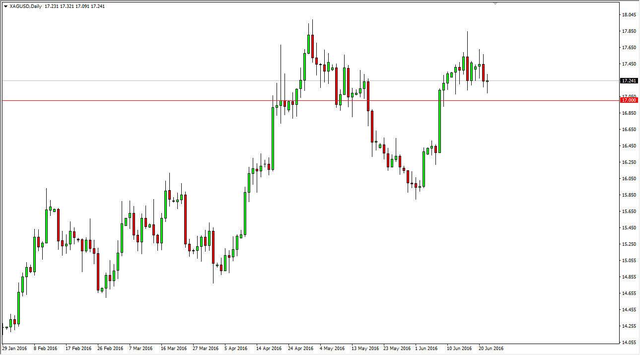 Silver markets have been rather sideways over the last couple of weeks, so it makes sense that perhaps the market should remain within the consolidation that we’ve seen for some time. That being the case, the market could very well bounce from here and the fact that we have formed a hammer during the course of the session during the day as it appears that the $17 level below continues to be supportive, and with that being the case I believe that the buyers will return. A break above the top of the hammer should send this market looking for the $17.75 level, and then possibly the $18 level above there. Ultimately, I do think that the buyers will win out due to the fact that we have quite a bit of uncertainty when it comes interest-rate hikes coming out of central banks around the world, especially the Federal Reserve.