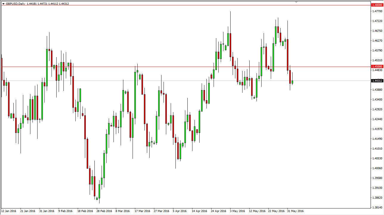 The GBP/USD pair initially tried to rally during the course of the day on Thursday, but turned right back around just below the 1.45 level to show that there is still significant noise in that area and of course resistance. With the Nonfarm Payroll Numbers coming out during the day today you can expect quite a bit of volatility in this pair, not to mention the fact that we still have headline risk coming out of London with the possible exit from the European Union by the United Kingdom. As long as that vote still in the background, it’s very likely that the sparrow be difficult to deal with.