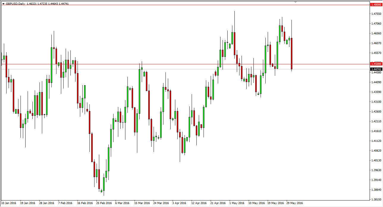 The British pound initially tried to rally during the course of the day on Tuesday, but the 1.47 level has caused enough resistance to turn the market back around. What started this selloff was a recent poll suggesting that the idea of leaving the European Union is starting to pick up momentum, and that currently 52% of the British public prefers leaving the EU. This of course has negative implications on the British pound in general, and as you can see the markets somewhat freaked out due to this information.