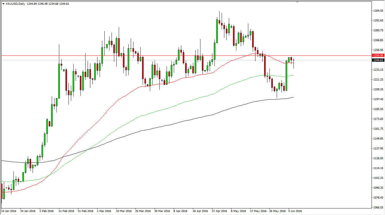 During the day on Tuesday, the gold markets initially fell during the session, but did bounce to show that the $1240 level continues to be quite a bit of support. That support ended up producing a hammer, and that of course is one of the most bullish candlesticks that you will run into. Typically, these show that the sellers are running out of momentum, and that they will soon be overtaken. In this particular market, I see a couple of different things going on that has got me paying attention to the yellow metal.